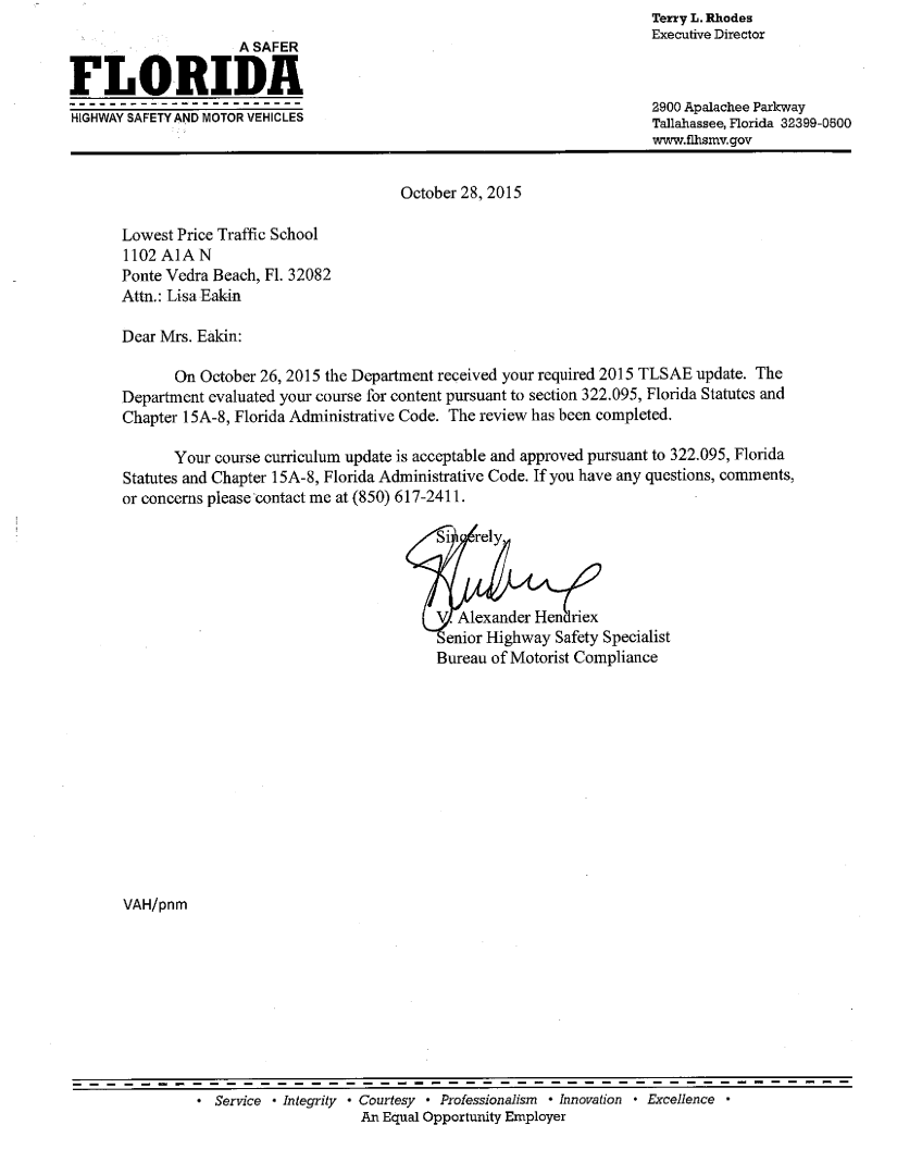 When you choose LowestPriceTrafficSchool.com, you're enrolling in online courses that are officially approved by the Florida Department of Highway Safety and Motor Vehicles (FLHSMV).